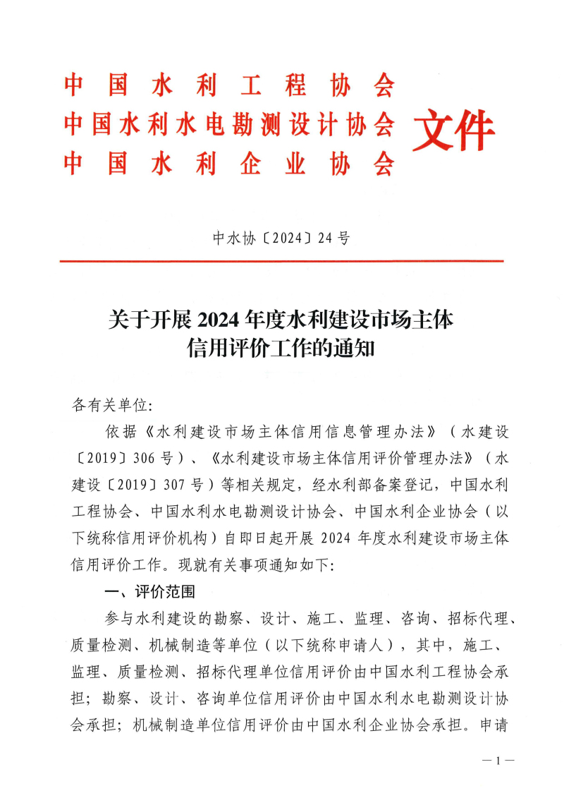 关于开展2024年度水利建设市场主体信用...